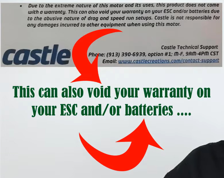 In fact, it states that there is no warranty for ANY Castle electronics, including the ESC when used with this motor – that’s how powerful it is.